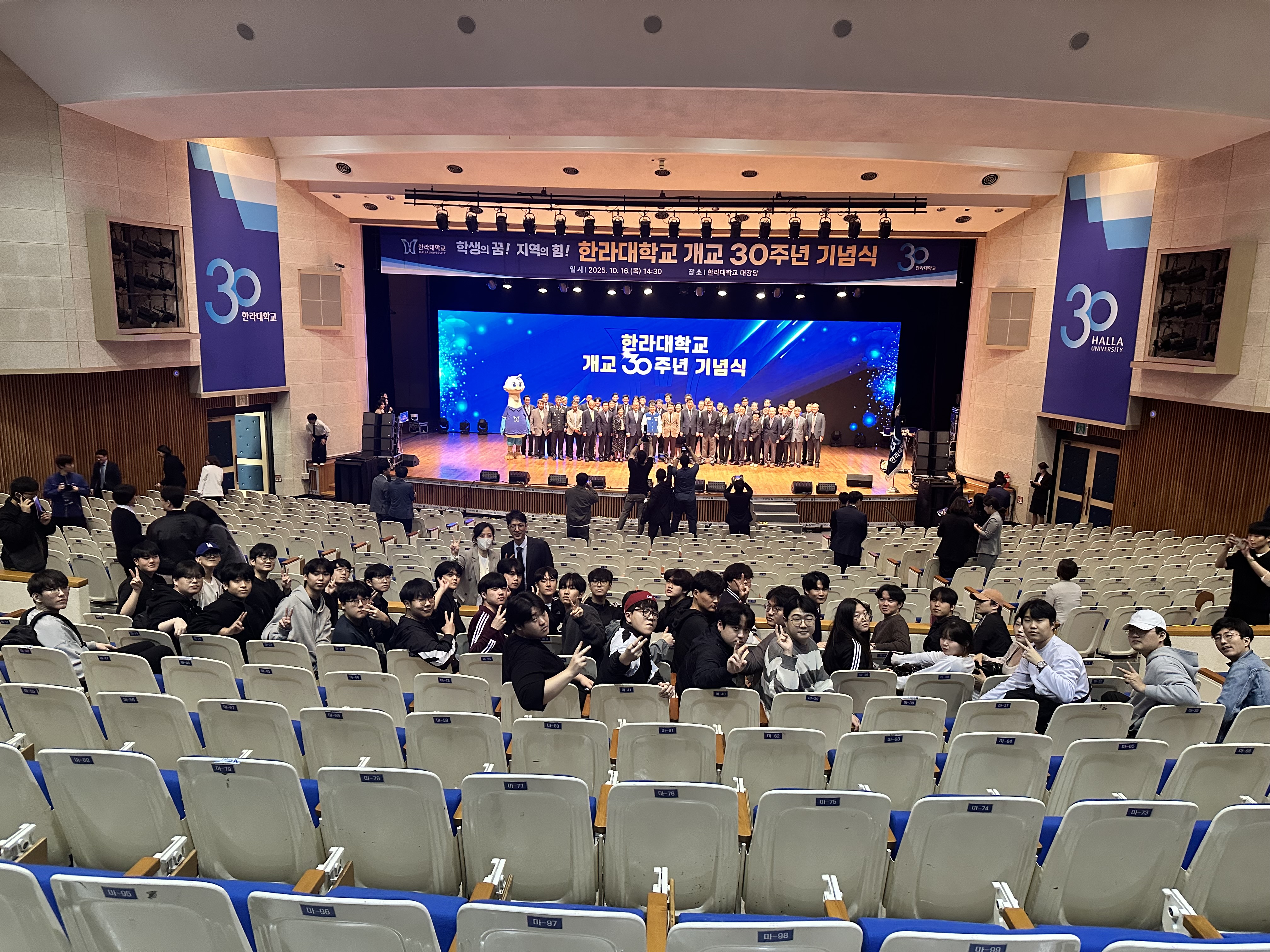 2025년 10월 16일, 한라대학교는 개교 30주년을 맞이하여 기념식을 성대히 개최하였습니다. 이번 기념식에는 지난 30년간의 발전과 도약을 되돌아보며, 교수진과 재학생들이 함께 참여하여 한라대학교의 발자취를 되새기고, 미래의 비전을 함께 공유하는 뜻깊은 시간이 되었습니다. 전기전자공학과 또한 학교의 성장과 함께 걸어온 지난 시간을 되돌아보며, 앞으로도 한라대학교와 함께 끊임없이 발전하고 성장하는 학과가 되겠습니다.