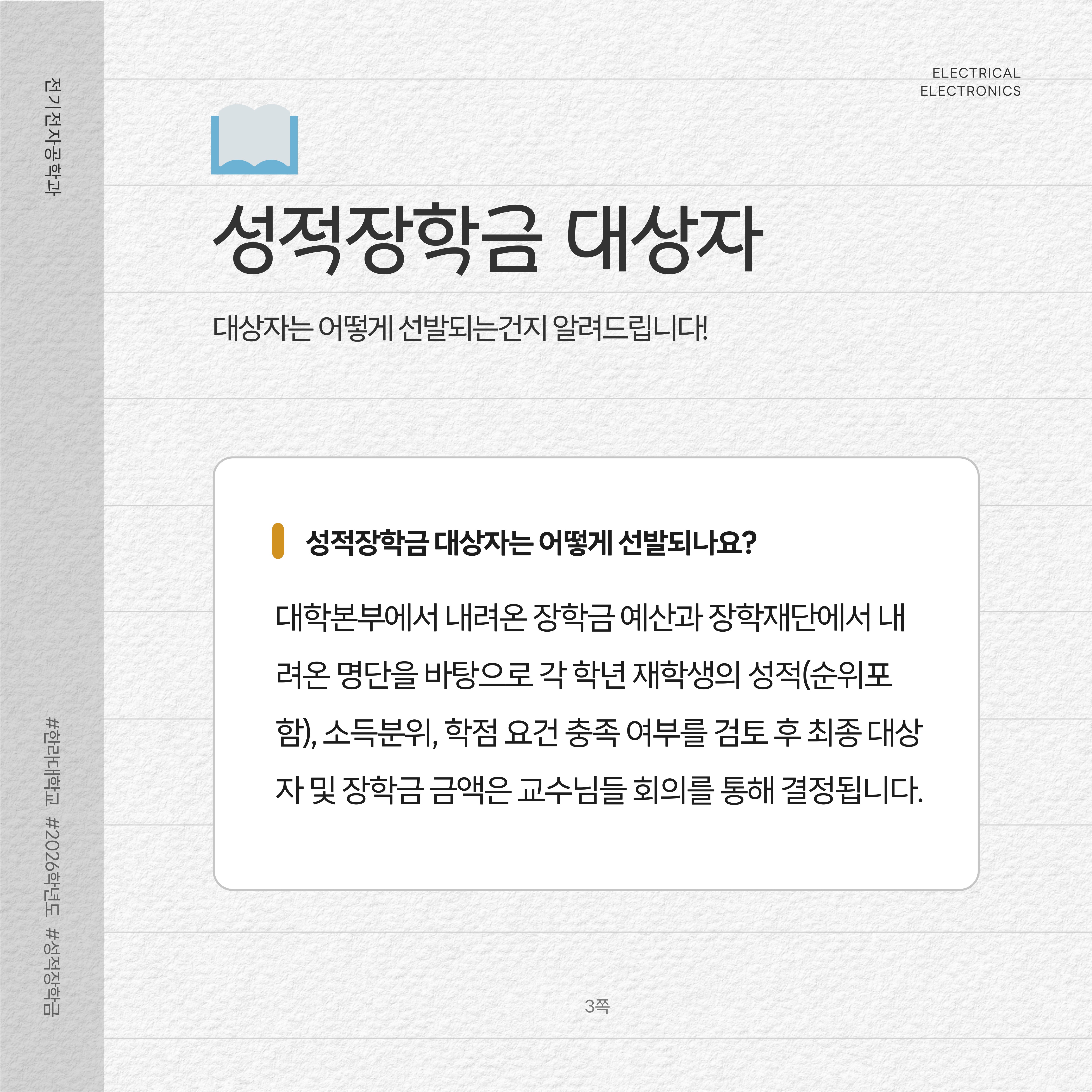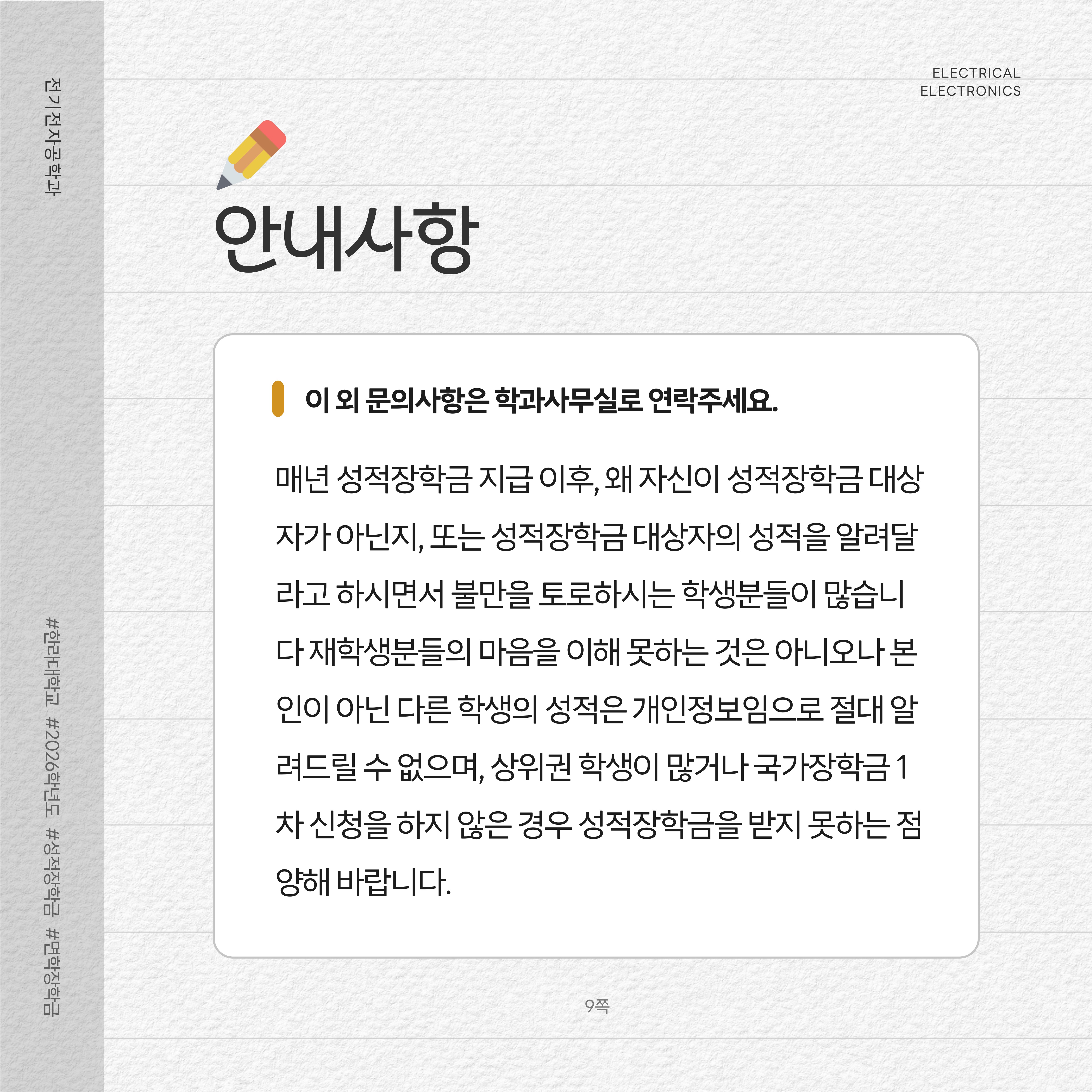 전기전자공학과 성적장학금 관련 자주 묻는 질문과 답변을 정리하였으니 참고바랍니다.