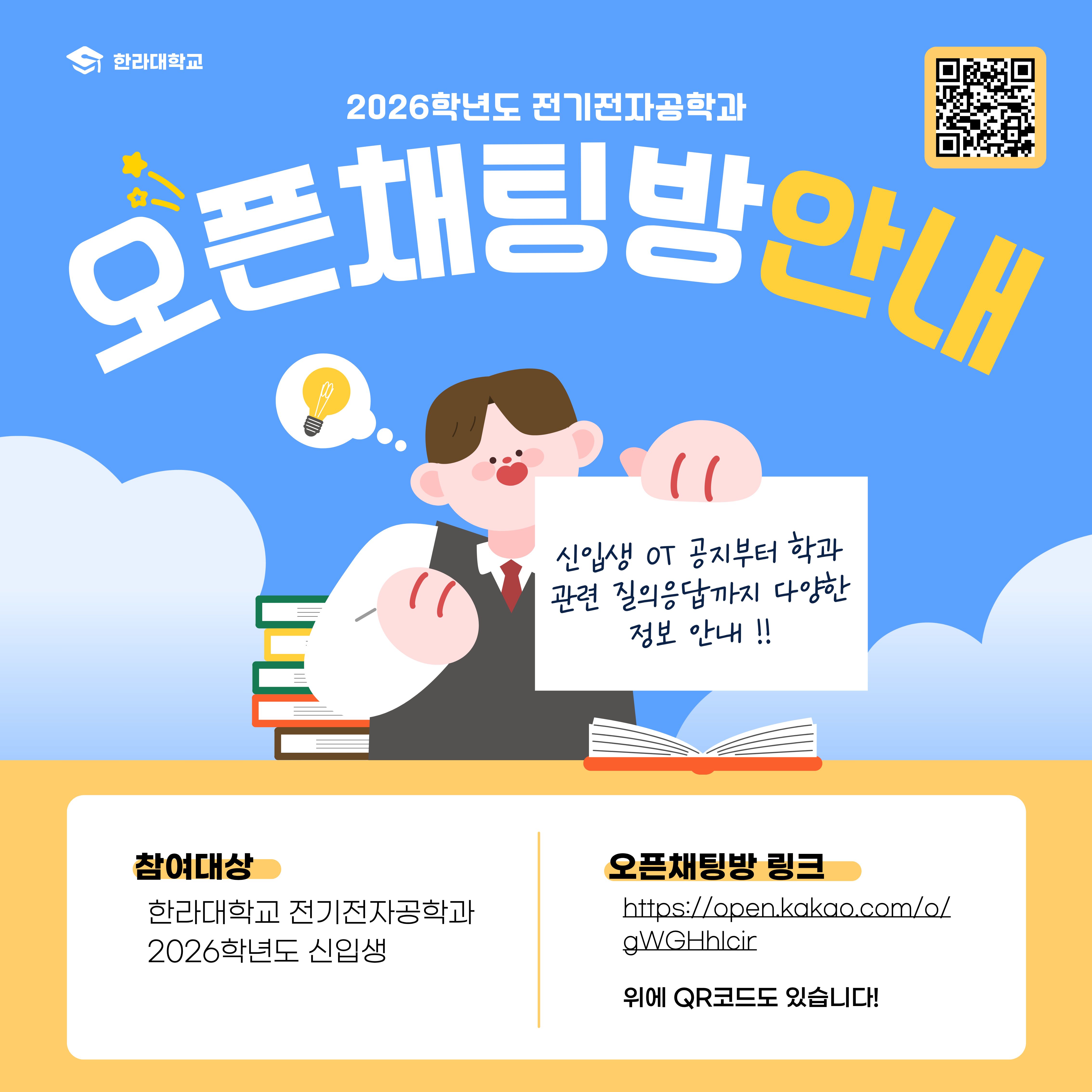 신입생 오리엔테이션 및 공지부터 학과 관련 질의응답까지 다양한 정보가 안내될 예정이오니, 2026학년도 신입생분들은 들어와주시면 감사하겠습니다.