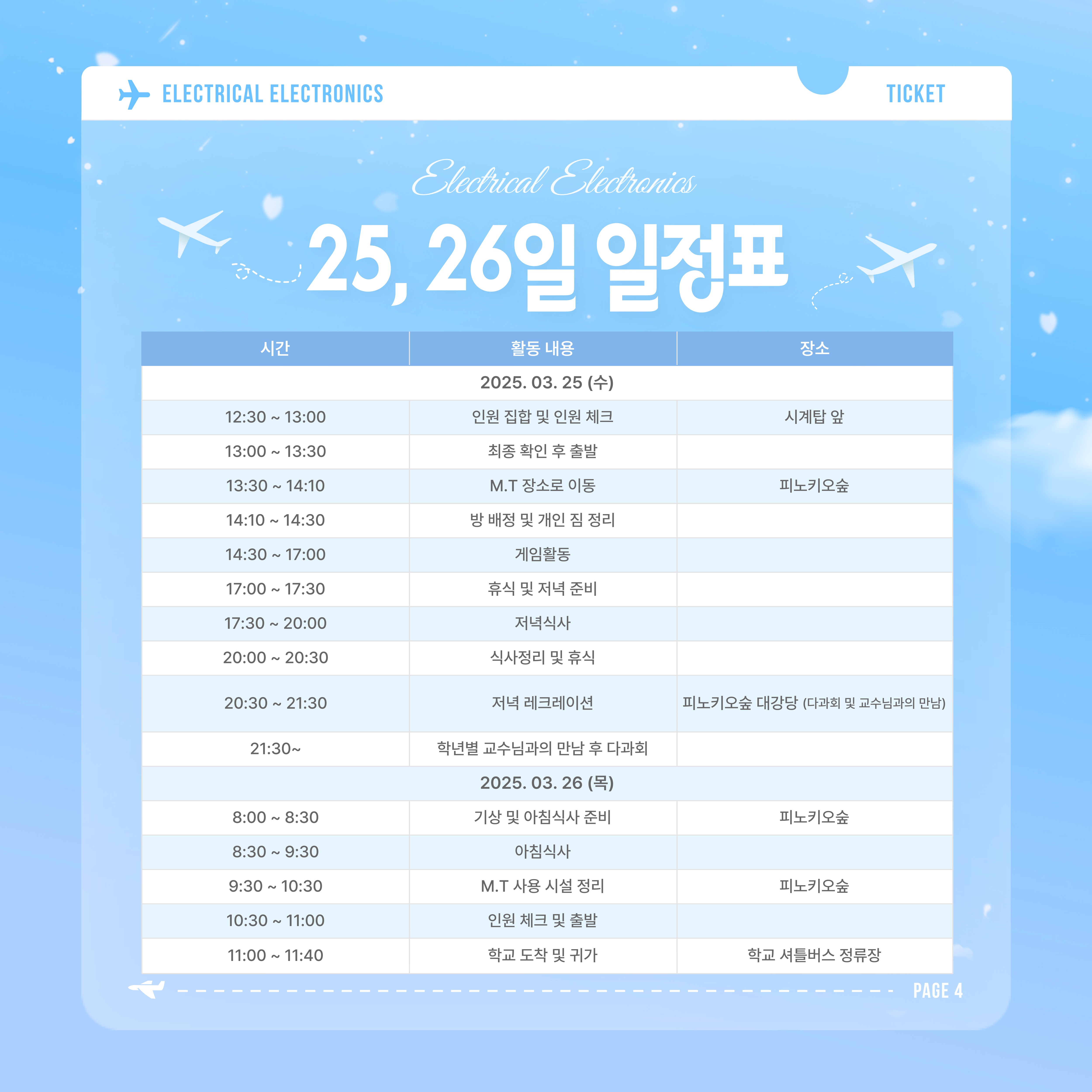 2026학년도 전기전자공학과 M.T 일정입니다. 참고 바랍니다.